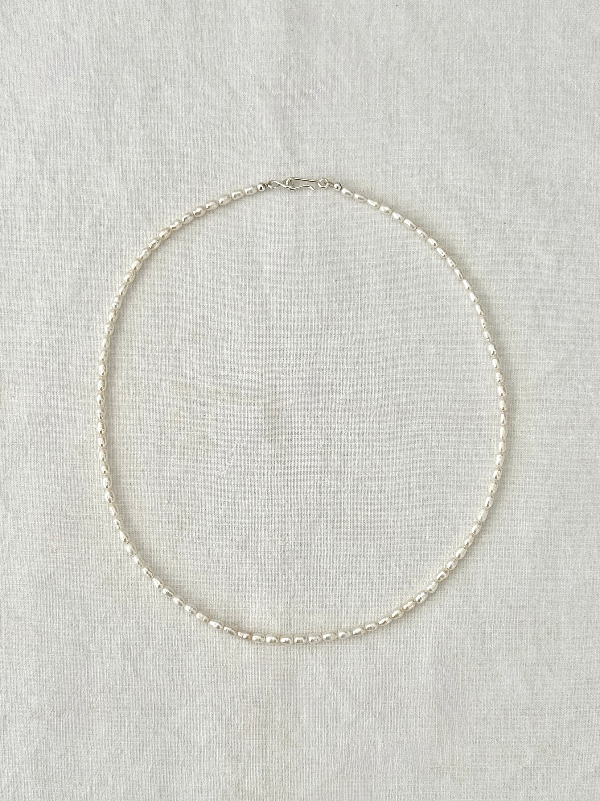 A elegant design made of small freshwater pearls just enough to add a sparkle around your neck. Offered in white, gray, black. Choose the color that speaks to you. A necklace very special on its own but would also stack beautifully with your favorite chain.